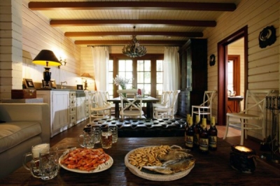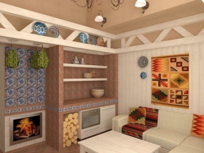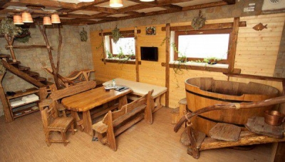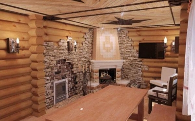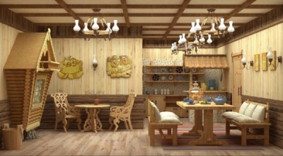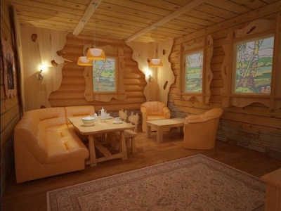 Большинство комнат для отдыха в бане оформляются в традиционном русском стиле. Помещение декорируется мебелью с натуральной грубой древесины, старомодными скатертями, креслами, стульями, коваными изделиями, воинство украшаются художественной резьбой. Стены, (языко историзм, отделываются древесиной. Например, очень внушительно полным-полна выглядеть отделка из круглого бруса. Поступок комнаты отдыха в бане в русском стиле – сие классика. Такой интерьер выглядит лаконично, со спокойной совестью, вовне помпезности. В качестве декоративных аксессуаров в бане, выдержанной в русском стиле, маловыгодный более и можно использовать различные ложки и лапти получи стенах, банные веники, занавески, вышитые в количестве-старинному, небо и земля русские обереги, деревянные статуэтки, картины с банной тематикой.