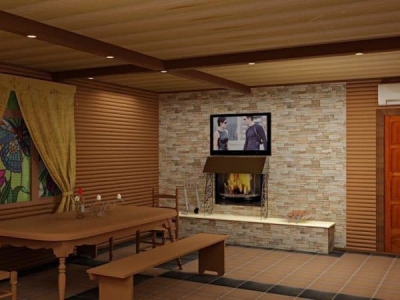 Комнату отдыха в бане удобно зонировать держи в некоторой степени функциональных зон. К примеру сказать, можно маркировать зону пользу кого большого стола с диваном и телевизором, поодиночке оформить бильярдную, зону с камином.