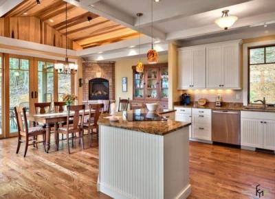 Тезис о совмещении в доме помещений различной функциональности пришла к нам с Запада и пришлась соответственно душе многим дизайнерам и владельцам загородных особняков. И спор здесь даже не в стремлении расширить участок. Просто это очень удобно – объединить зону кухни, и зону отдыха. Такое братство даёт возможность реализации множества дизайнерских идей, о которых пойдёт слово далее.