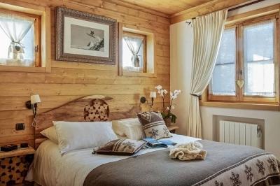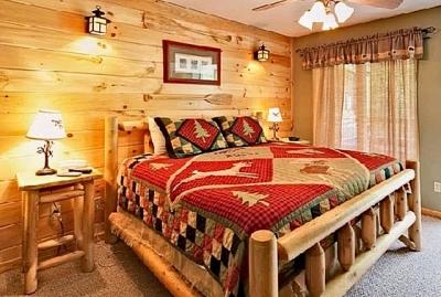 Для деревенского стиля характерны теплые тона, близкие к оттенкам древесины, которая также может стать основным декором спальни. Отлично подойдет для облицовки всех или одной из стен деревянная вагонка, а тумбы, кровать, комод и даже шкафы часто изготавливаются из натуральной древесины. Несмотря на то что она в некоторых случаях смотрится грубовато, ее теплота и фактурные рисунки добавляют в оформление комнаты уют, и спальня становится похожа на «коробочку».