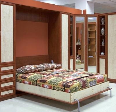 Еще одним вариантом, подходящим для маленького помещения, может стать кровать-трансформер, которая на дневной период убирается в нишу в стене. Такие модели будут особенно актуальны в том случае, если спальню приходится использовать днем в качестве кабинета.