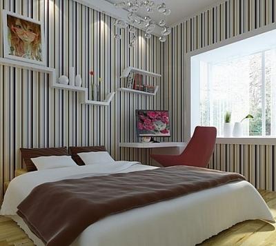 При необходимости расширить помещение используются обои с поперечными полосами, которые можно наклеить на одну или две стены — и этого будет достаточно. Если всю комнату декорировать таким образом, она, наоборот, будет смотреться меньше, а глаза будут уставать, что не позволит человеку расслабиться и хорошо отдохнуть.