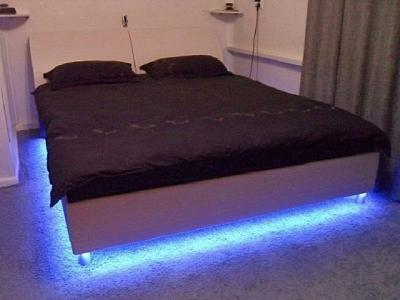 Для романтических натур может представлять интерес и вот такая оригинальная подсветка мебели в спальной