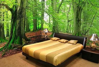 3D-обои в маленькой спальне значительно расширяют ее. Другое дело, не станет ли вскорости такой «пейзаж» раздражающим фактором.