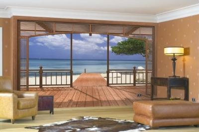 Линия горизонта, морской пейзаж из открытого окна, панорамные обои сделают любое помещение визуально просторнее.
