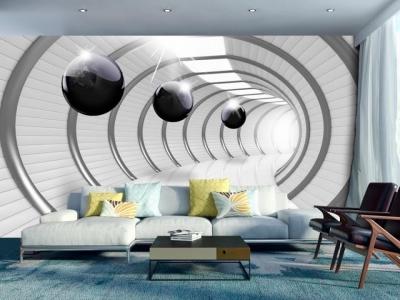 Дорога, уходящая вдаль или тоннель, действуя по правилу перспективного изображения, удлиняют помещение. А если поклеить обои с изображение масштабных объектов, таких как железнодорожный мост или высокий пирс, то предметы в помещении будут казаться более мелких размеров, чем на самом деле. В то время, как сама комната будет казаться объемней.