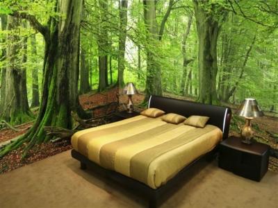 Такие фотообои «раздвигают» стены и создают ощущение простора. Что же касается цветовой палитры, то лучше выбирать нежные пастельные тона, способствующие успокоению и расслаблению.