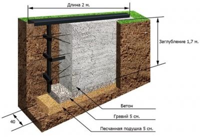 Глубина фундамента зависит от глубины промерзания грунта в вашей местности. Учитывайте, что бетон хороший проводник холода, поэтому высота фундамента должна быть на 20 см больше глубины промерзания.