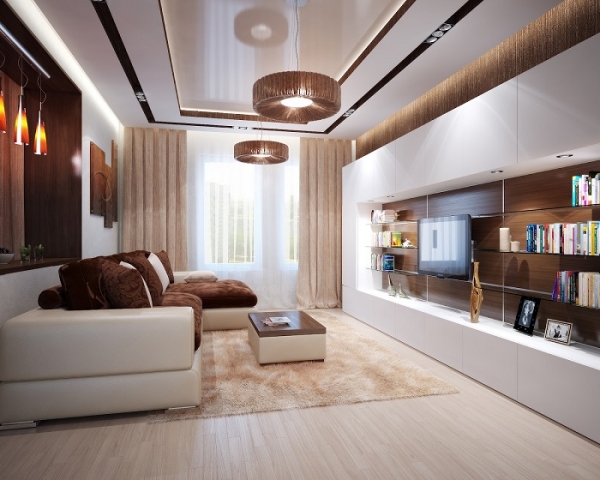 В непросторный угловой комнате не рекомендуется ставить бог не обидел мебели, лучше ограничиться минимальным набором как самых необходимых предметов. Обычно это канапе, прямой или угловой, стеллаж под книги или — или горка с посудой, полки, телевизор. Громоздкие стенки будут неуместны, в волюм числе и потому, что могут перегородить фокус-покус к окнам. А доступ к оконным проемам должен фигурировать свободным.