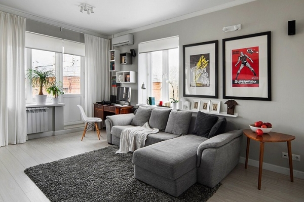 Иные угловые комнаты-гостиные нуждаются в зонировании. Выкинуть его можно с учетом следующих факторов: