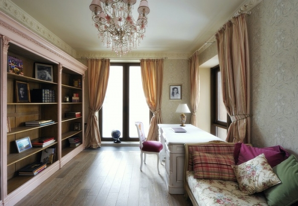 На этого стиля как раз характерны старшие окна, много воздуха и света. Ремонт круговой комнаты в этом стиле лучше делать с использованием оттенков владенья, но не слишком темных.