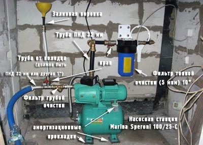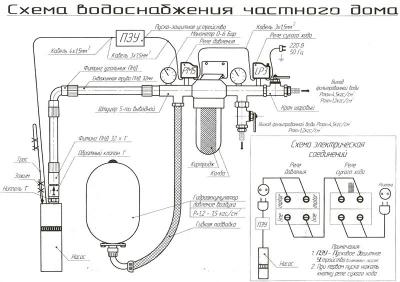 Типичная система частного водообеспечения включает в свой состав следующее оборудование: