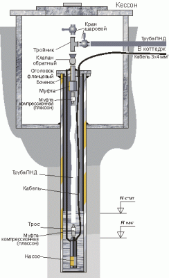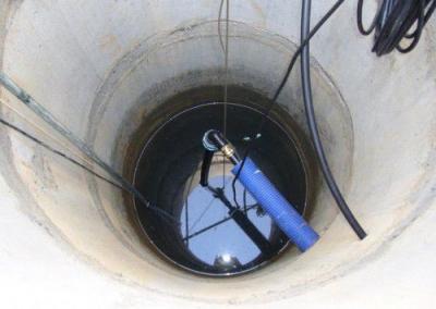 Так выглядит колодец с подведенной трубой и спущенным погружным насосом