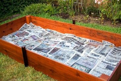На самое дно можно уложить старые газеты, картон, куски обоев, следующий слой – измельченный хворост, кора дерева, опилки. После этого засыпают мелкую стружку, укладывают растительные отходы, торф или компост. И сверху все это присыпают тем грунтом, который вынули в самом начале. Обильно поливают грядку водой, чтобы промочить все слои, и оставляют на несколько дней. Когда грядка уплотнится, можно приступать к посадкам.