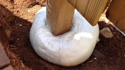 При застывании материал приобретает высокую прочность, что позволяет надежно фиксировать опоры в вертикальном положении.