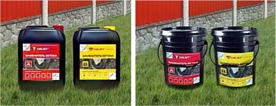— «HILST Professional» — это комплект из двух канистр по пять литров каждого компонента. Замешивание производится в какой-то отдельной таре. Предполагается одновременная работа нескольких бригад, например, при установке длинного забора или свайного поля.